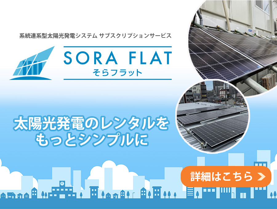 「そらフラット」は系統連系型の太陽光発電システムを月額定額料金で導入できるサブスクリプションサービスです。